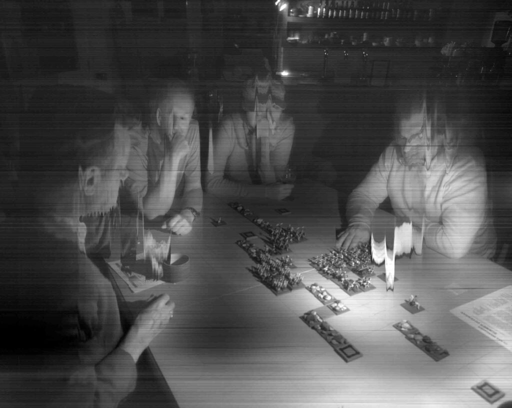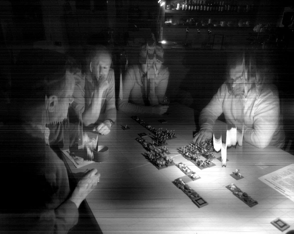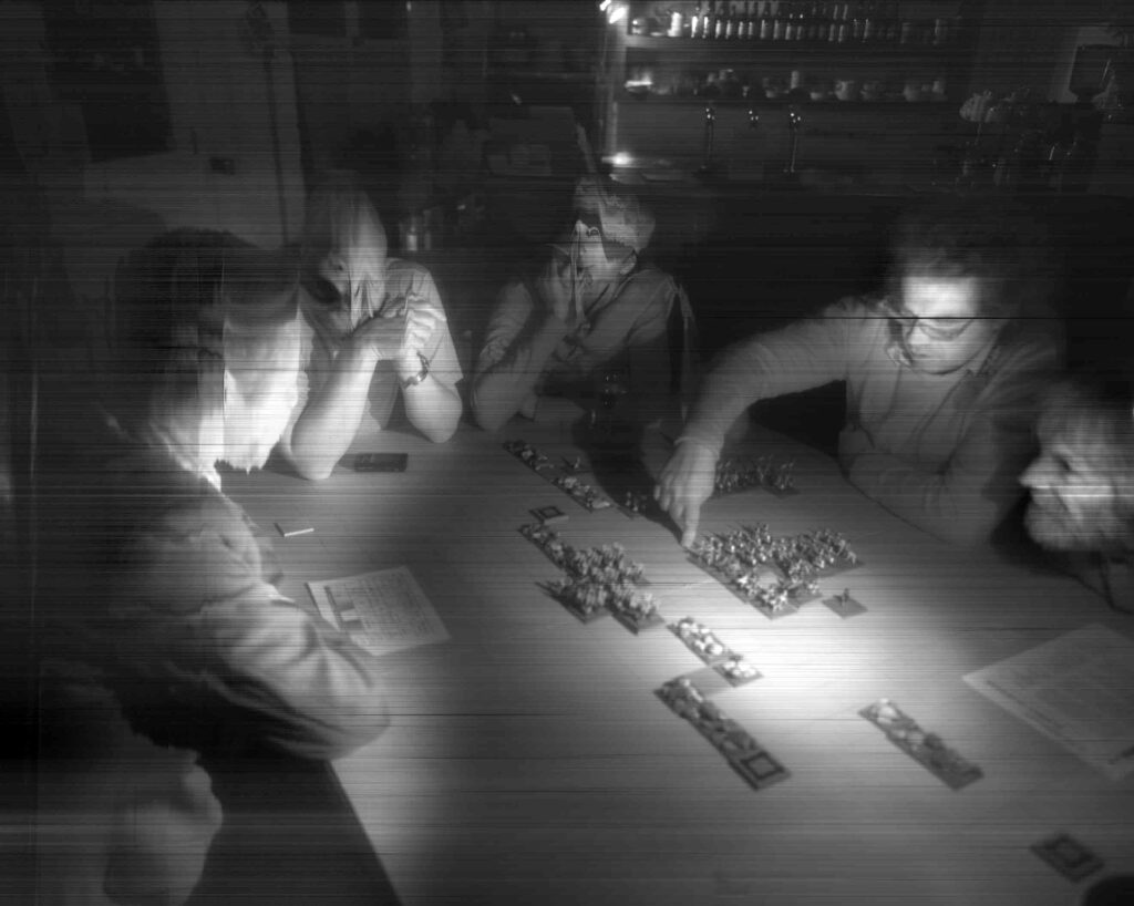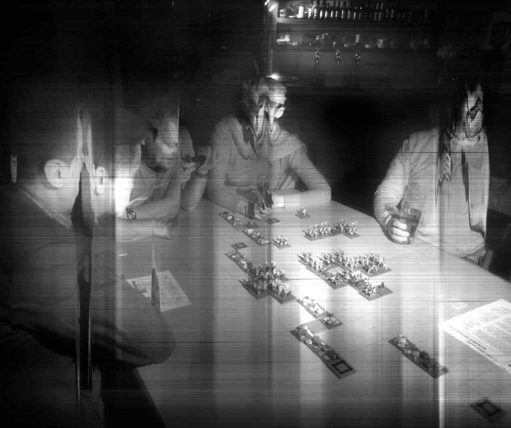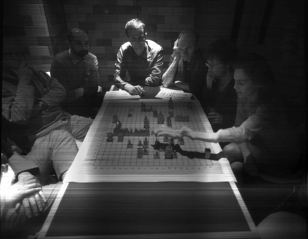Employing customised software to override the scanner’s alarm at its severe hacking, and to make it a stable, functioning camera-plate, Veness has used Xenon-Eye to document Class Wargames’ public events since 2007; playing Guy Debord’s The Game of War at national and international venues.