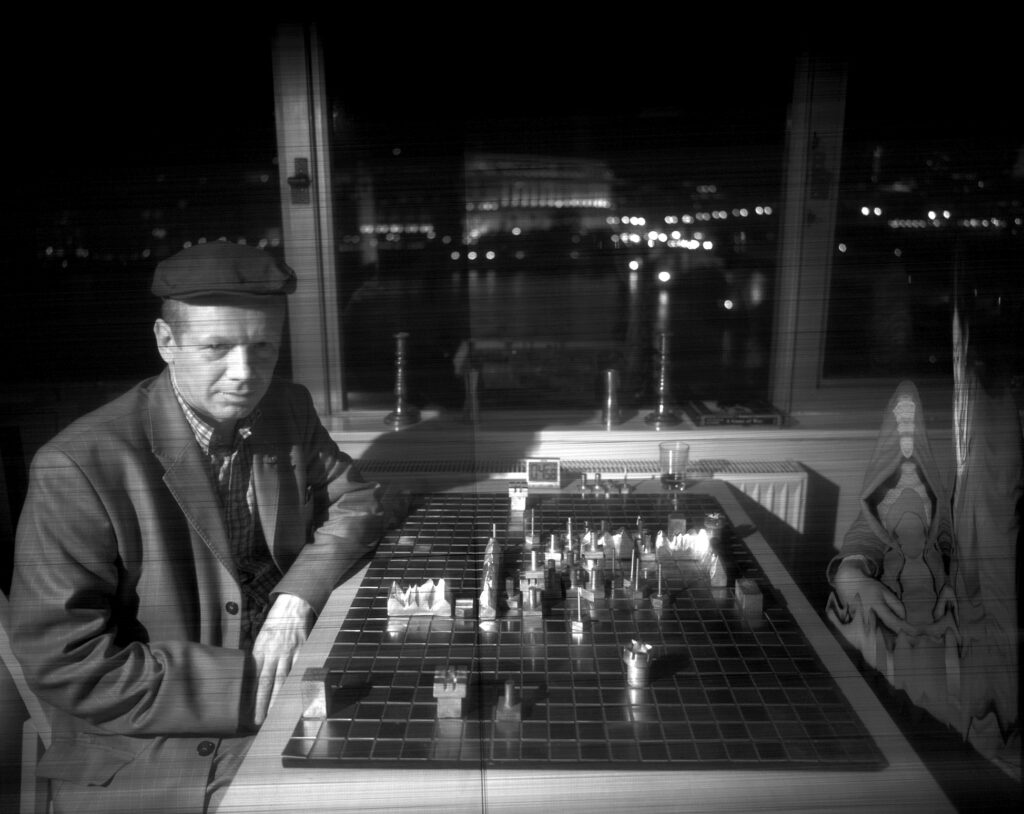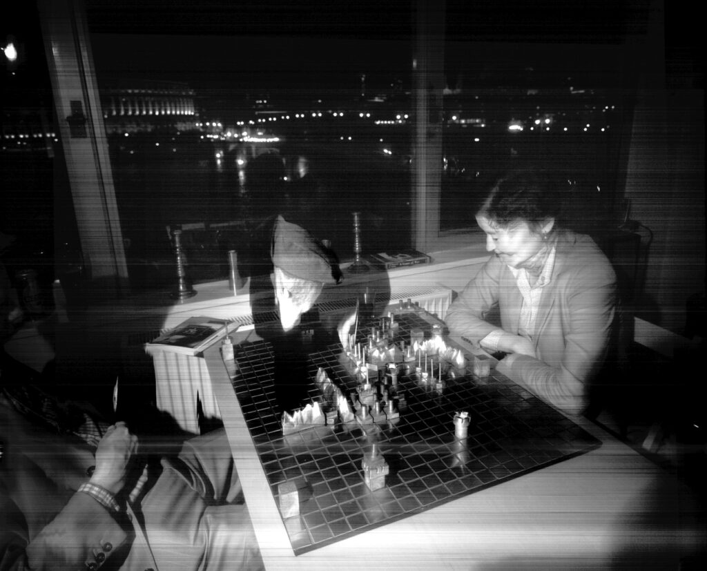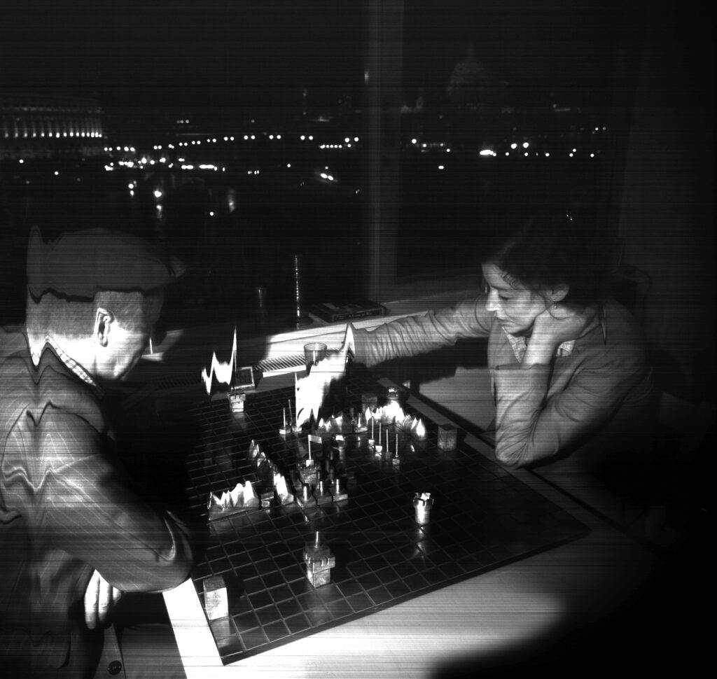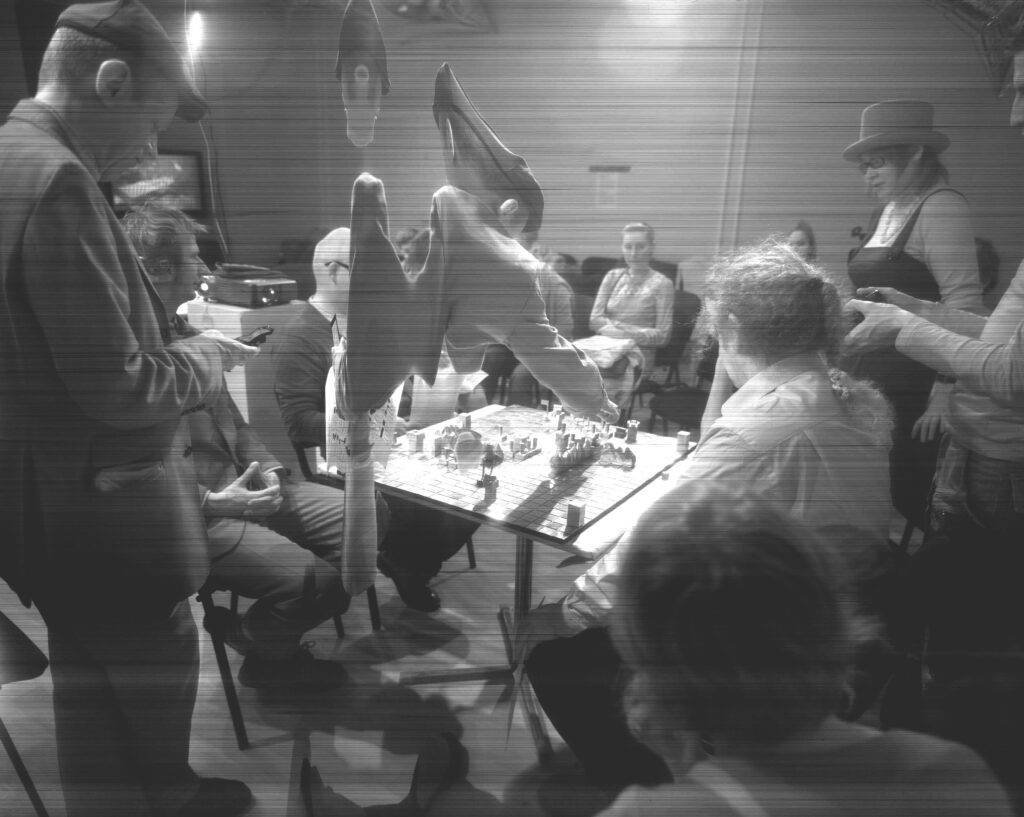 Employing customised software to override the scanner’s alarm at its severe hacking, and to make it a stable, functioning camera-plate, Veness has used Xenon-Eye to document Class Wargames’ public events since 2007; playing Guy Debord’s The Game of War at national and international venues.